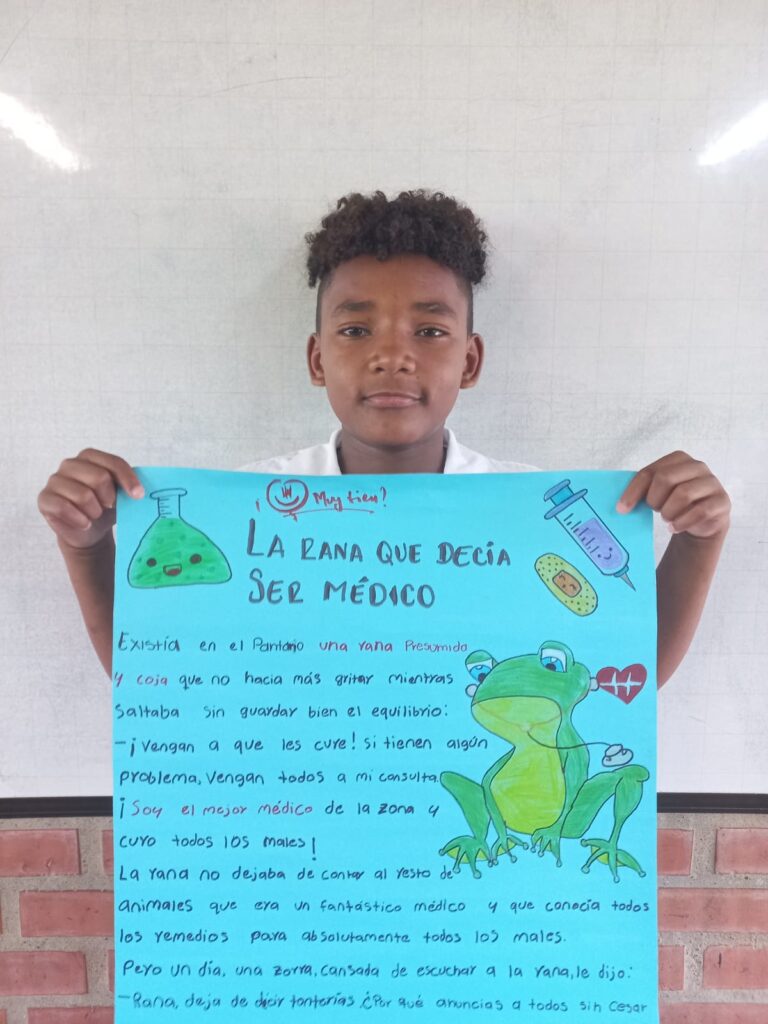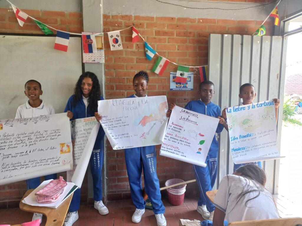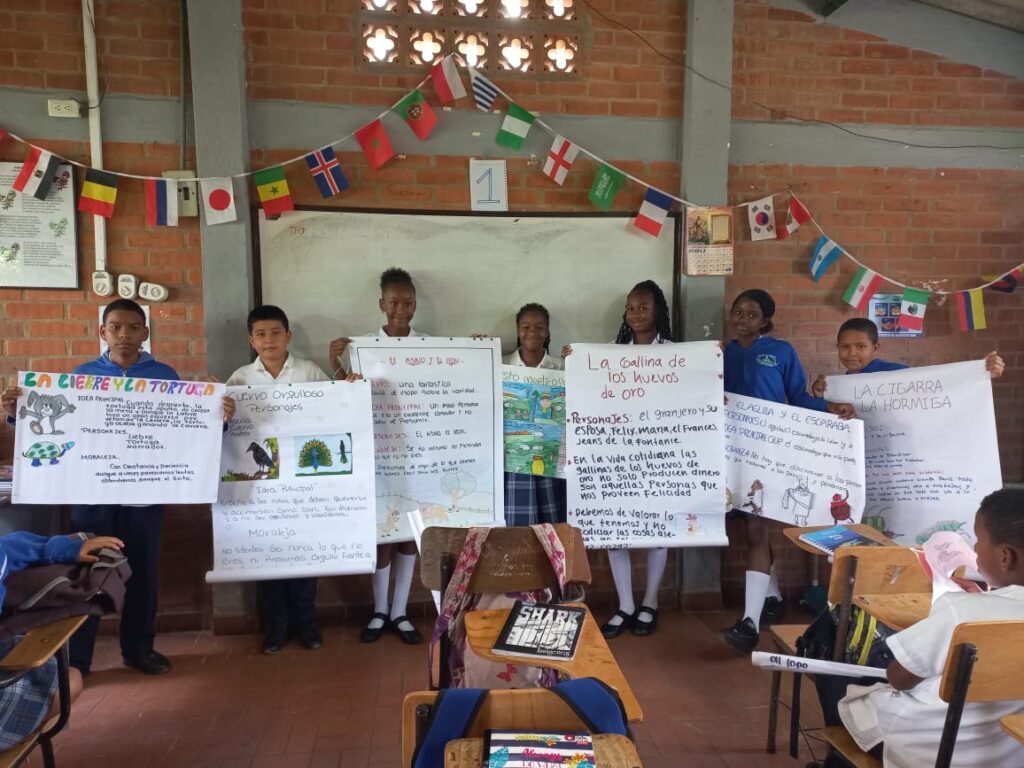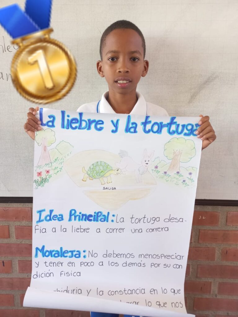 1. Aprendimos quien fue Esopo 2. Cada estudiante recibió el nombre de una fábula de Esopo. 3. Con la colaboración de los padres y madres de familia debieron investigar en internet la fábula y seguir las instrucciones dadas por la docente. 4. Los estudiantes realizaron la exposición en clase. 5. Los estudiantes del grado seleccionaron las mejores carteleras y las mejores exposiciones 6. Cada estudiante voto por la mejor cartelera y mejor exposición